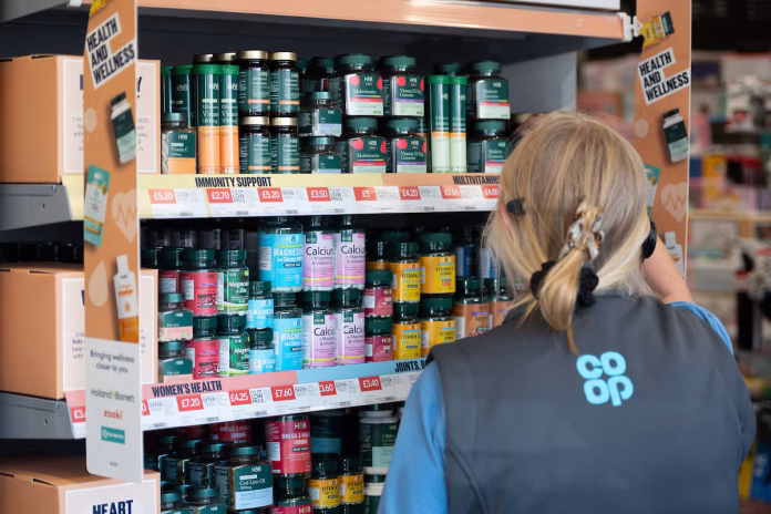 New Co-op branded “Health and Wellness” dedicated bays will consist of 52 lines including vitamins and supplements, which focuses on gut health, family wellbeing and preventative health from Holland & Barrett, Symprove and Zooki.